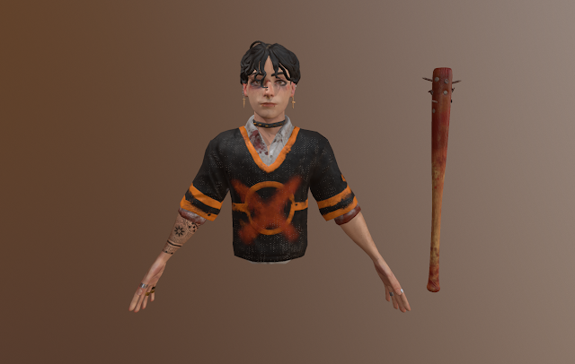 The skin texturing was really fun and I enjoyed putting nuances and story to the characters body. Though I do really like the face and I think its one of the strongest parts of the texturing, I do think some of the bruising and cuts don't read instantly which is a bit of a shame but I hope that to other people it looks better than what I currently see. Another one of the best parts of the texturing in my opinion is the arms and hands. This part was also really fun to texture and I think the results look realistic and to the quality I initially wanted.